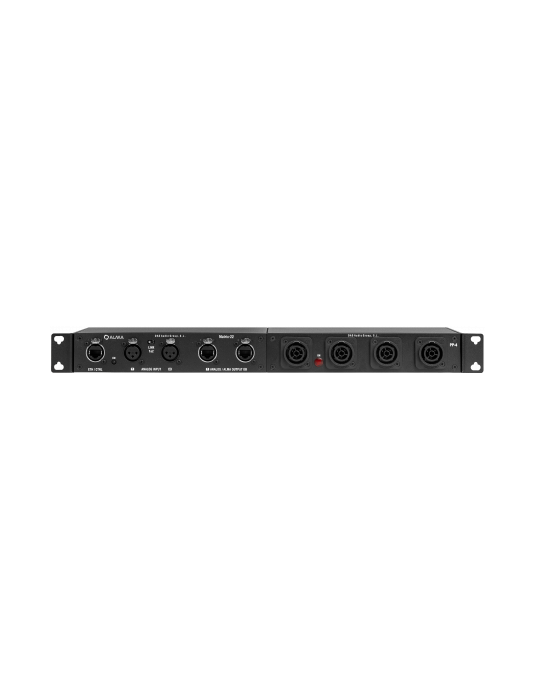 El switch Ethernet interno combina los datos de control y el audio analógico en dos salidas etherCON destinadas a conectar los sistemas de audio; Además en el panel trasero, se incluyen dos salidas de audio diseñadas para enviar audio y datos a los grupos de sistemas.