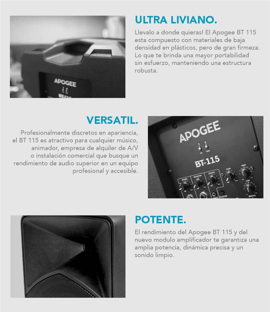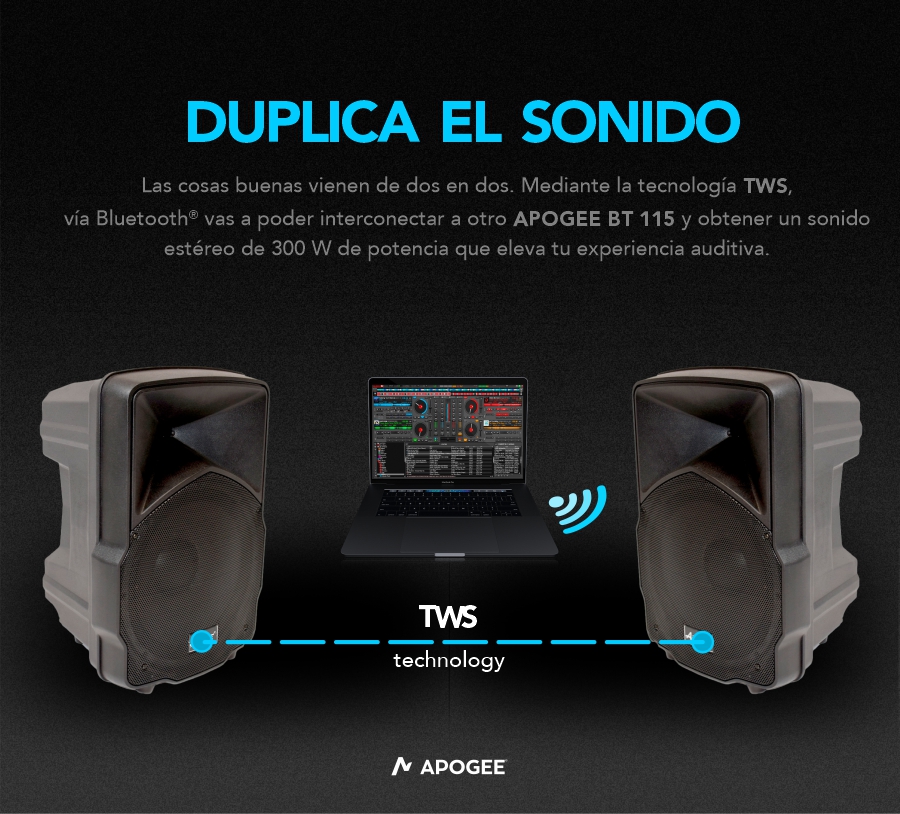 APOGEE BT-115 – Caja Activa 2 Vías 15″+ 1″ – Bluetooth TWS