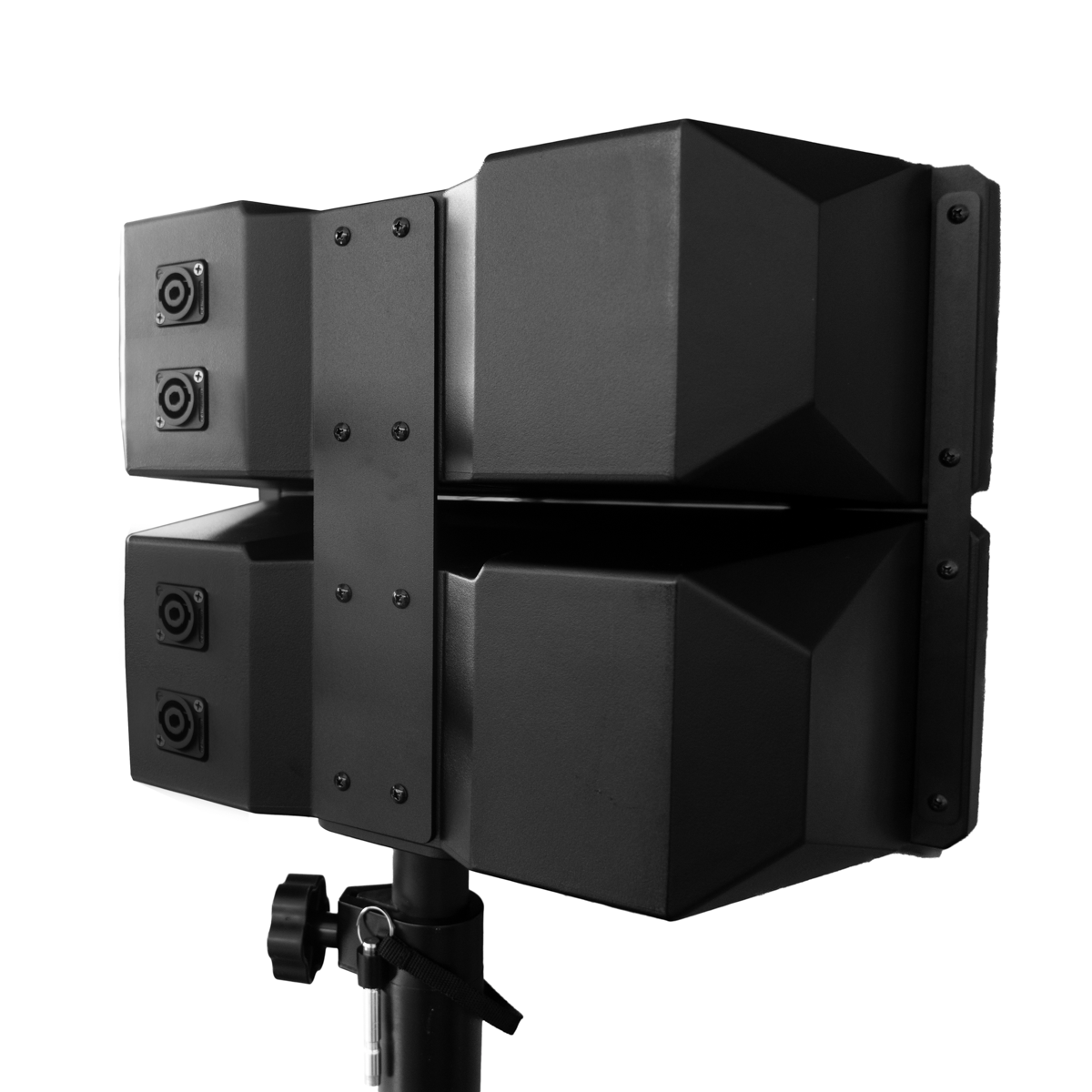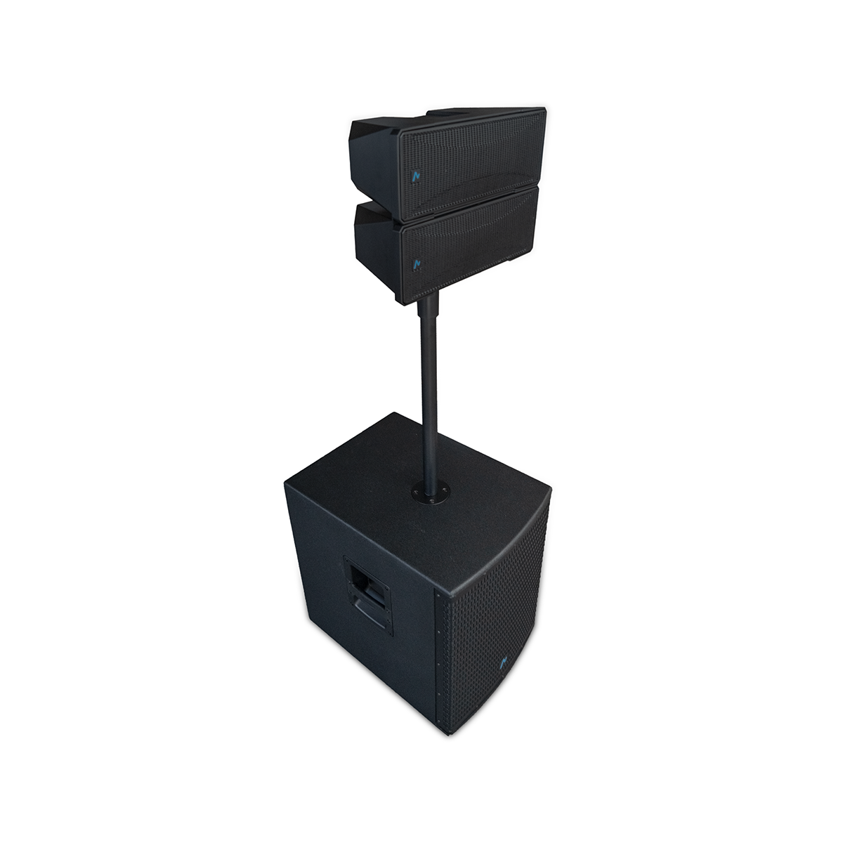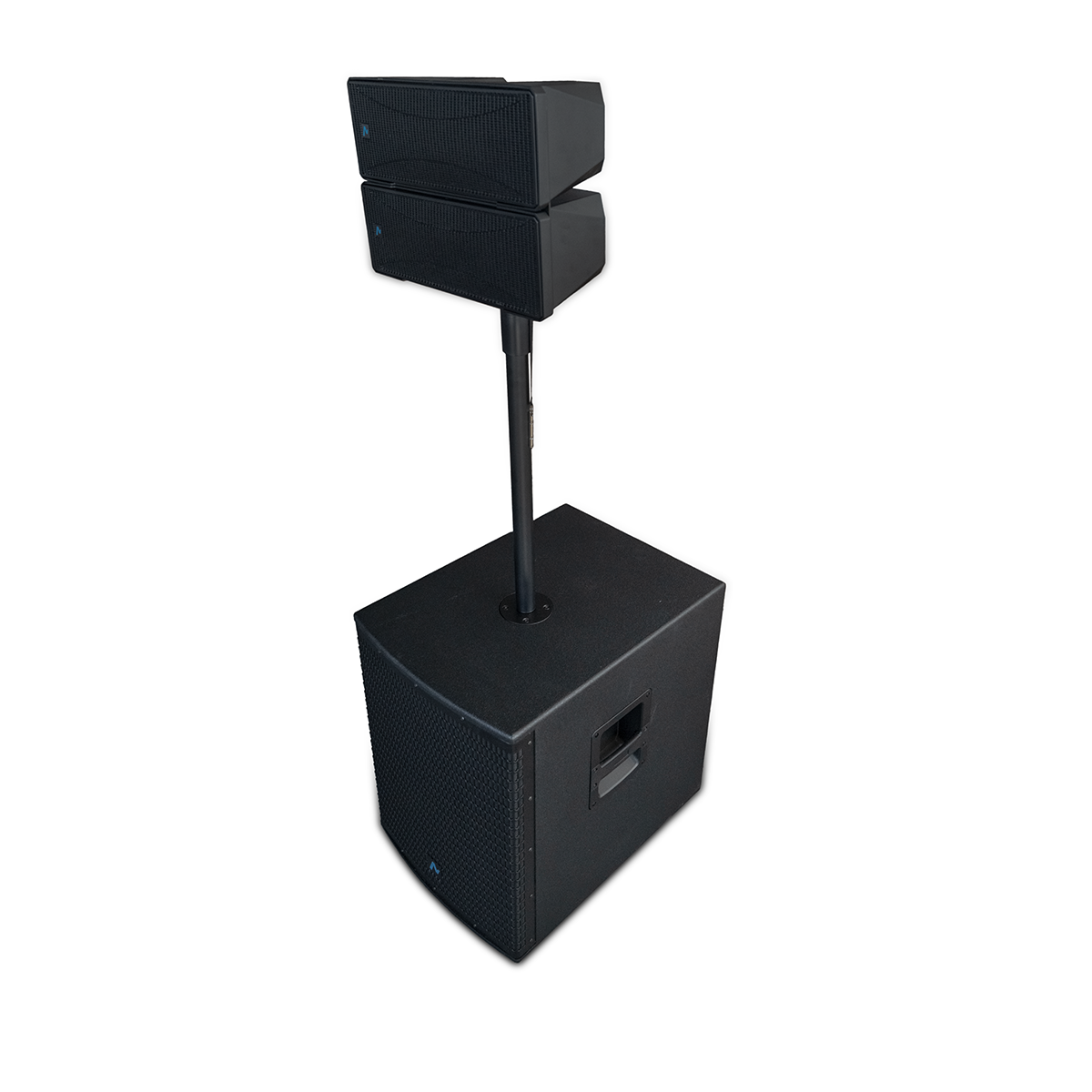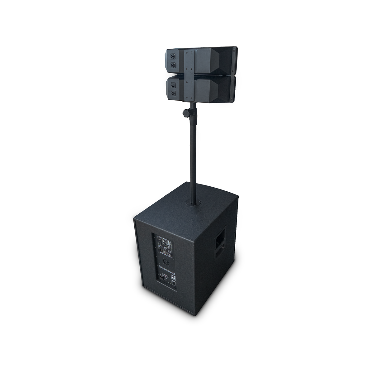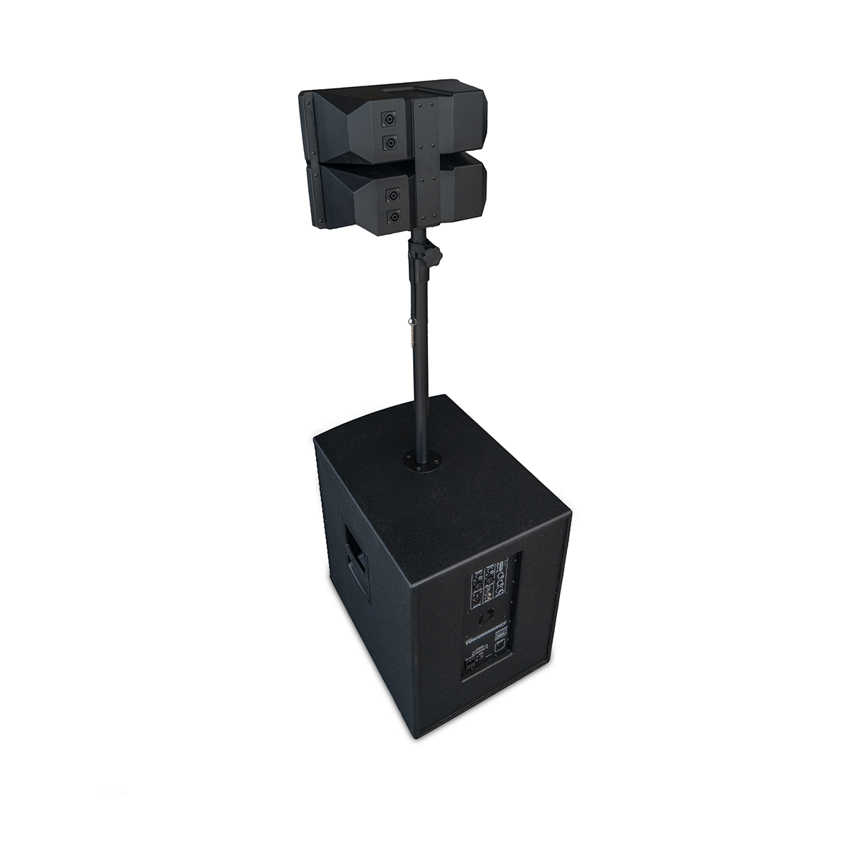 Combina un subwoofer de 15” con una torre de medios/agudos doble de 4” + driver de 25 mm, brindando un rendimiento potente y equilibrado. Gracias a su amplificador Clase D biamplificado y