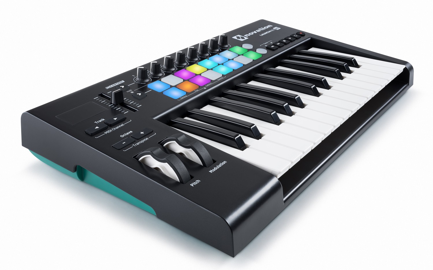 Controlador de teclado USB de Novation versión MK2 de 25 teclas, para Ableton Live – 16 pads sensibles a la velocidad RGB , 8 perillas y botones de navegación y de control dedicados – Software para Mac y PC – Totalmente alimentado por puerto USB; que funciona sin conductor o cable de alimentación – Incluye Ableton Live Lite , Bass Station de Novation y de la estación V instrumentos virtuales y más de 1 GB de muestras Loopmasters