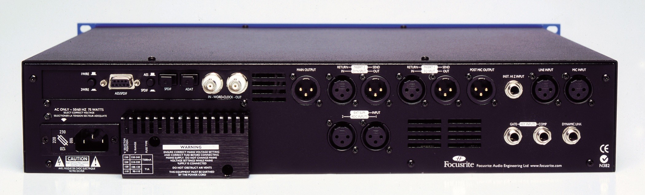 Preamplificador. Previo, compresor, puerta de ruido y EQ monocanal. Previo con ajustes independientes de ganancia y trim variable, 4 ajustes de impedancia, inversor de polaridad, +48V phantom y conmutador de línea e instrumento.