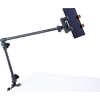 El soporte universal para brazo de cámara y micrófono para podcast. Opciones de montaje: tornillo de rosca para cámara de ¼»- 20, adaptador de rosca de micrófono integrado de 3/8″ a rosca de micrófono de 5/8″, abrazadera adaptable para escritorio/tubo. Rango de sujeción: 15 mm – 35 mm (0,6” – 1,3”)