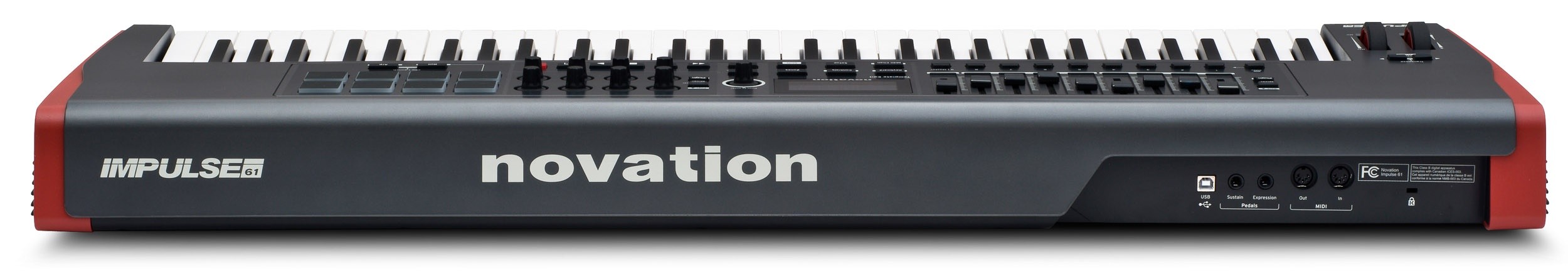 Nueva linea de controladores Novation MIDI/USB – 61 Teclas semi pesadas con aftertouch – 8 Encoders – 8 Drum Pads retroiluminados – Incluye software Automap 4 – Display LCD – Entrada y Salida MIDI – Controles de Octava – Ruedas de Pitch y Modulación – Incluye Ableton Lite 8.
