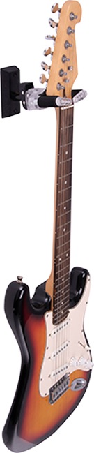 El colgador para guitarra PLEXI AGS GSP38WBLT de edición limitada de HERCULES gira automáticamente para acomodar guitarras o bajos de diferentes formas de forma vertical y segura. Cuenta con una atractiva base de madera para uso doméstico o de estudio.