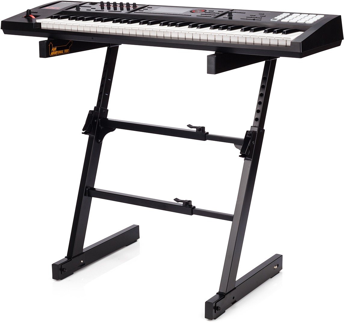El soporte para teclado HERCULES Z-Style KS400B tiene un sistema AutoLock incorporado para un fácil ajuste de altura y tiene un diseño plegable compacto de una sola pieza.